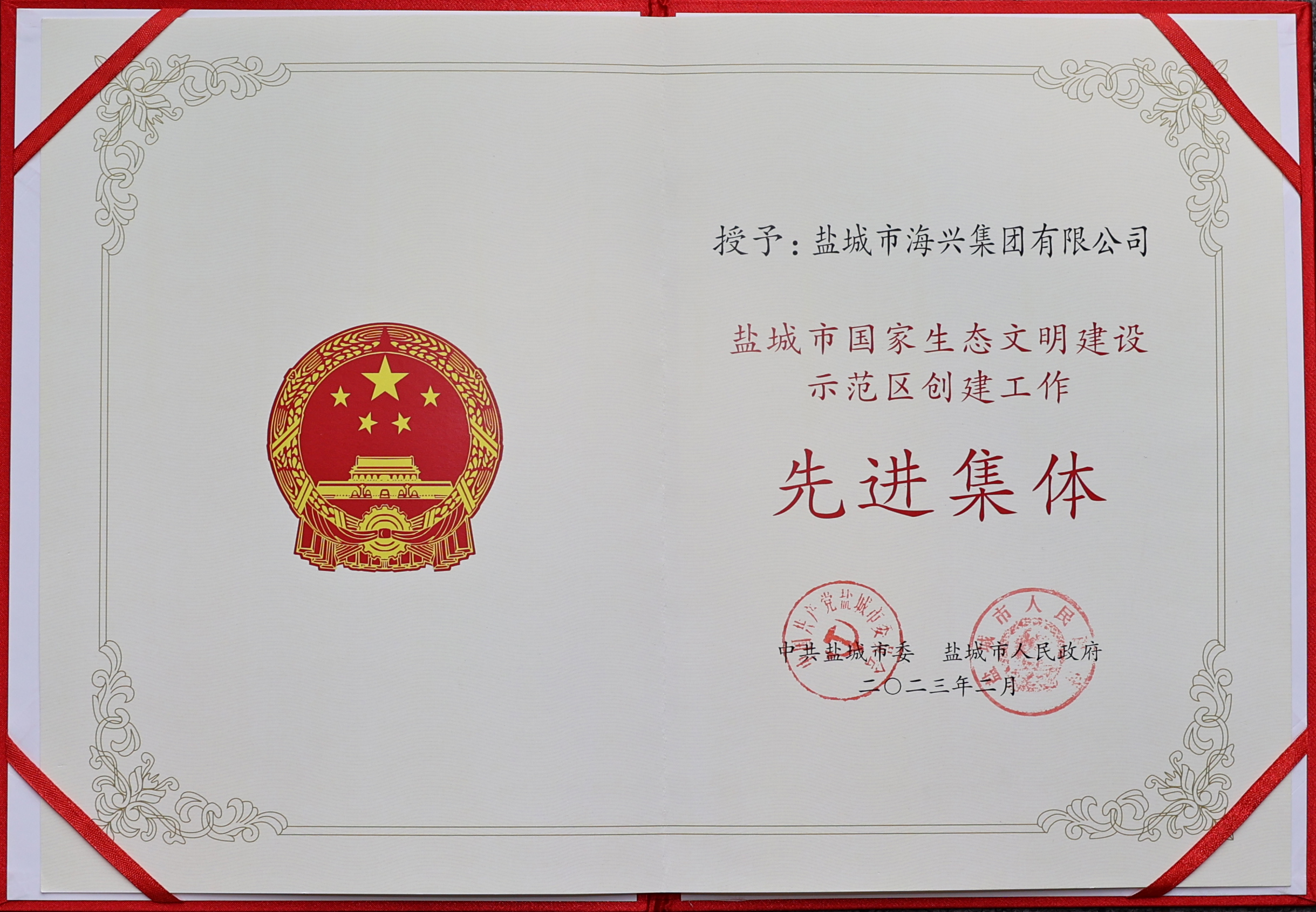 近日,市委、市政府表彰了一批鹽城市國(guó)家生態(tài)文明建設(shè)示范區(qū)創(chuàng)建工作先進(jìn)集體和先進(jìn)個(gè)人。其中,海興集團(tuán)榮獲“鹽城市國(guó)家生態(tài)文明建設(shè)示范區(qū)創(chuàng)建工作先進(jìn)集體”榮譽(yù)稱號(hào)。2023-04-04